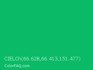 CIELCh 66.628,66.413,151.477 Color is a normal green color and the nearest color is GO Green #00ab66. Hex code #0aba66 and RGB value is rgb(10,186,102). In RGB color space, this color is composed of 4% red, 73% green, 40% blue, In CMYK color space, this color is composed of 95% cyan, 0% magenta, 45% yellow , 27% black , In HSL color space, this color has a hue angle of 151° , 90% saturation and 38% lightness.