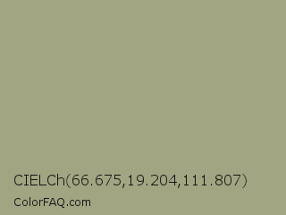 CIELCh 66.675,19.204,111.807 Color is a normal yellow color and the nearest color is Sage #9ea587. Hex code #a2a582 and RGB value is rgb(162,165,130). In RGB color space, this color is composed of 64% red, 65% green, 51% blue, In CMYK color space, this color is composed of 2% cyan, 0% magenta, 21% yellow , 35% black , In HSL color space, this color has a hue angle of 65° , 16% saturation and 58% lightness.