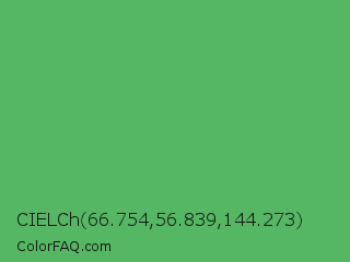 CIELCh 66.754,56.839,144.273 Color is a normal green color and the nearest color is Fern #63b76c. Hex code #55b664 and RGB value is rgb(85,182,100). In RGB color space, this color is composed of 33% red, 71% green, 39% blue, In CMYK color space, this color is composed of 53% cyan, 0% magenta, 45% yellow , 29% black , In HSL color space, this color has a hue angle of 129° , 40% saturation and 52% lightness.