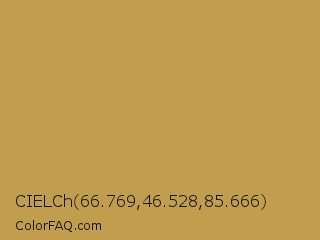 CIELCh 66.769,46.528,85.666 Color is a normal orange color and the nearest color is Tussock #c5994b. Hex code #c19e4d and RGB value is rgb(193,158,77). In RGB color space, this color is composed of 76% red, 62% green, 30% blue, In CMYK color space, this color is composed of 0% cyan, 18% magenta, 60% yellow , 24% black , In HSL color space, this color has a hue angle of 42° , 48% saturation and 53% lightness.