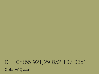 CIELCh 66.921,29.852,107.035 Color is a normal yellow color and the nearest color is Green Smoke #a4af6e. Hex code #a6a66f and RGB value is rgb(166,166,111). In RGB color space, this color is composed of 65% red, 65% green, 44% blue, In CMYK color space, this color is composed of 0% cyan, 0% magenta, 33% yellow , 35% black , In HSL color space, this color has a hue angle of 60° , 24% saturation and 54% lightness.