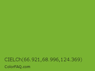 CIELCh 66.921,68.996,124.369 Color is a normal green color and the nearest color is Sushi #87ab39. Hex code #79b331 and RGB value is rgb(121,179,49). In RGB color space, this color is composed of 47% red, 70% green, 19% blue, In CMYK color space, this color is composed of 32% cyan, 0% magenta, 73% yellow , 30% black , In HSL color space, this color has a hue angle of 87° , 57% saturation and 45% lightness.