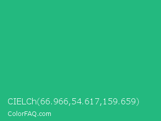CIELCh 66.966,54.617,159.659 Color is a normal green color and the nearest color is Mountain Meadow Crayola #1ab385. Hex code #23b97f and RGB value is rgb(35,185,127). In RGB color space, this color is composed of 14% red, 73% green, 50% blue, In CMYK color space, this color is composed of 81% cyan, 0% magenta, 31% yellow , 27% black , In HSL color space, this color has a hue angle of 157° , 68% saturation and 43% lightness.