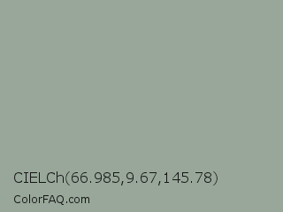 CIELCh 66.985,9.67,145.78 Color is a light green color and the nearest color is Pewter #96a8a1. Hex code #98a799 and RGB value is rgb(152,167,153). In RGB color space, this color is composed of 60% red, 65% green, 60% blue, In CMYK color space, this color is composed of 9% cyan, 0% magenta, 8% yellow , 35% black , In HSL color space, this color has a hue angle of 124° , 8% saturation and 63% lightness.