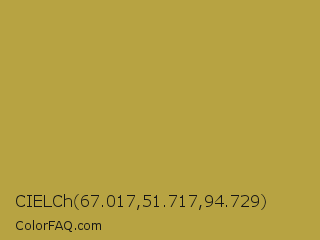 CIELCh 67.017,51.717,94.729 Color is a normal yellow color and the nearest color is Brass #b5a642. Hex code #b7a342 and RGB value is rgb(183,163,66). In RGB color space, this color is composed of 72% red, 64% green, 26% blue, In CMYK color space, this color is composed of 0% cyan, 11% magenta, 64% yellow , 28% black , In HSL color space, this color has a hue angle of 50° , 47% saturation and 49% lightness.