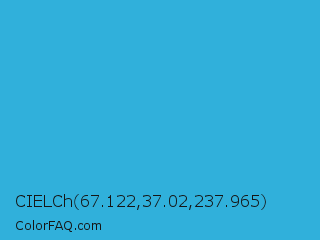 CIELCh 67.122,37.02,237.965 Color is a normal blue color and the nearest color is Scooter #2ebfd4. Hex code #30b0db and RGB value is rgb(48,176,219). In RGB color space, this color is composed of 19% red, 69% green, 86% blue, In CMYK color space, this color is composed of 78% cyan, 20% magenta, 0% yellow , 14% black , In HSL color space, this color has a hue angle of 195° , 70% saturation and 52% lightness.