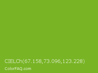 CIELCh 67.158,73.096,123.228 Color is a normal green color and the nearest color is Lima #76bd17. Hex code #79b425 and RGB value is rgb(121,180,37). In RGB color space, this color is composed of 47% red, 71% green, 15% blue, In CMYK color space, this color is composed of 33% cyan, 0% magenta, 79% yellow , 29% black , In HSL color space, this color has a hue angle of 85° , 66% saturation and 43% lightness.
