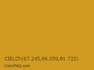 CIELCh 67.245,66.059,81.722 Color is a normal orange color and the nearest color is Lemon Curry #cca01d. Hex code #d09b20 and RGB value is rgb(208,155,32). In RGB color space, this color is composed of 82% red, 61% green, 13% blue, In CMYK color space, this color is composed of 0% cyan, 25% magenta, 85% yellow , 18% black , In HSL color space, this color has a hue angle of 42° , 73% saturation and 47% lightness.