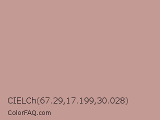 CIELCh 67.29,17.199,30.028 Color is a light red color and the nearest color is Tuscany #c09999. Hex code #c49a95 and RGB value is rgb(196,154,149). In RGB color space, this color is composed of 77% red, 60% green, 58% blue, In CMYK color space, this color is composed of 0% cyan, 21% magenta, 24% yellow , 23% black , In HSL color space, this color has a hue angle of 6° , 28% saturation and 68% lightness.