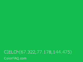 CIELCh 67.322,77.178,144.475 Color is a normal green color and the nearest color is Dark Pastel Green #03c03c. Hex code #12bd4d and RGB value is rgb(18,189,77). In RGB color space, this color is composed of 7% red, 74% green, 30% blue, In CMYK color space, this color is composed of 90% cyan, 0% magenta, 59% yellow , 26% black , In HSL color space, this color has a hue angle of 141° , 83% saturation and 41% lightness.