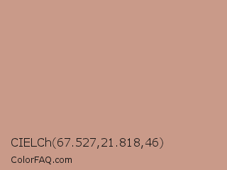 CIELCh 67.527,21.818,46 Color is a light orange color and the nearest color is Oriental Pink #c69191. Hex code #c99a89 and RGB value is rgb(201,154,137). In RGB color space, this color is composed of 79% red, 60% green, 54% blue, In CMYK color space, this color is composed of 0% cyan, 23% magenta, 32% yellow , 21% black , In HSL color space, this color has a hue angle of 16° , 37% saturation and 66% lightness.