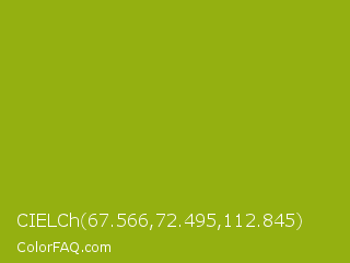 CIELCh 67.566,72.495,112.845 Color is a normal lime color and the nearest color is Citron #9fa91f. Hex code #94b011 and RGB value is rgb(148,176,17). In RGB color space, this color is composed of 58% red, 69% green, 7% blue, In CMYK color space, this color is composed of 16% cyan, 0% magenta, 90% yellow , 31% black , In HSL color space, this color has a hue angle of 71° , 82% saturation and 38% lightness.