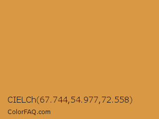 CIELCh 67.744,54.977,72.558 Color is a normal orange color and the nearest color is Tigers Eye #e08d3c. Hex code #d99844 and RGB value is rgb(217,152,68). In RGB color space, this color is composed of 85% red, 60% green, 27% blue, In CMYK color space, this color is composed of 0% cyan, 30% magenta, 69% yellow , 15% black , In HSL color space, this color has a hue angle of 34° , 66% saturation and 56% lightness.