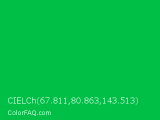 CIELCh 67.811,80.863,143.513 Color is a normal green color and the nearest color is Dark Pastel Green #03c03c. Hex code #00bf47 and RGB value is rgb(0,191,71). In RGB color space, this color is composed of 0% red, 75% green, 28% blue, In CMYK color space, this color is composed of 100% cyan, 0% magenta, 63% yellow , 25% black , In HSL color space, this color has a hue angle of 142° , 100% saturation and 37% lightness.