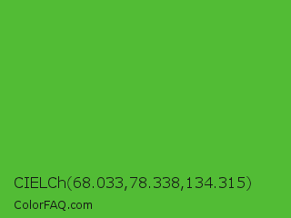 CIELCh 68.033,78.338,134.315 Color is a normal green color and the nearest color is Apple #4fa83d. Hex code #52bc35 and RGB value is rgb(82,188,53). In RGB color space, this color is composed of 32% red, 74% green, 21% blue, In CMYK color space, this color is composed of 56% cyan, 0% magenta, 72% yellow , 26% black , In HSL color space, this color has a hue angle of 107° , 56% saturation and 47% lightness.
