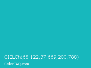 CIELCh 68.122,37.669,200.788 Color is a normal cyan color and the nearest color is Java #1fc2c2. Hex code #17b8bd and RGB value is rgb(23,184,189). In RGB color space, this color is composed of 9% red, 72% green, 74% blue, In CMYK color space, this color is composed of 88% cyan, 3% magenta, 0% yellow , 26% black , In HSL color space, this color has a hue angle of 182° , 78% saturation and 42% lightness.