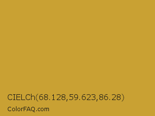 CIELCh 68.128,59.623,86.28 Color is a normal orange color and the nearest color is Satin Sheen Gold #cba135. Hex code #c9a133 and RGB value is rgb(201,161,51). In RGB color space, this color is composed of 79% red, 63% green, 20% blue, In CMYK color space, this color is composed of 0% cyan, 20% magenta, 75% yellow , 21% black , In HSL color space, this color has a hue angle of 44° , 60% saturation and 49% lightness.