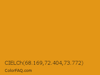 CIELCh 68.169,72.404,73.772 Color is a normal orange color and the nearest color is Dixie #e29418. Hex code #e39616 and RGB value is rgb(227,150,22). In RGB color space, this color is composed of 89% red, 59% green, 9% blue, In CMYK color space, this color is composed of 0% cyan, 34% magenta, 90% yellow , 11% black , In HSL color space, this color has a hue angle of 37° , 82% saturation and 49% lightness.