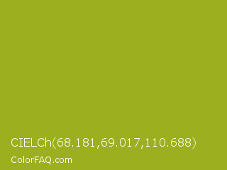 CIELCh 68.181,69.017,110.688 Color is a normal yellow color and the nearest color is Citron #9fa91f. Hex code #9cb01f and RGB value is rgb(156,176,31). In RGB color space, this color is composed of 61% red, 69% green, 12% blue, In CMYK color space, this color is composed of 11% cyan, 0% magenta, 82% yellow , 31% black , In HSL color space, this color has a hue angle of 68° , 70% saturation and 41% lightness.