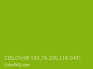 CIELCh 68.192,76.226,118.043 Color is a normal lime color and the nearest color is Apple Green #8db600. Hex code #87b50f and RGB value is rgb(135,181,15). In RGB color space, this color is composed of 53% red, 71% green, 6% blue, In CMYK color space, this color is composed of 25% cyan, 0% magenta, 92% yellow , 29% black , In HSL color space, this color has a hue angle of 77° , 85% saturation and 38% lightness.