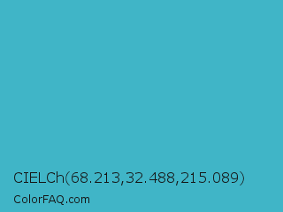 CIELCh 68.213,32.488,215.089 Color is a normal cyan color and the nearest color is Pelorous #3eabbf. Hex code #40b5c7 and RGB value is rgb(64,181,199). In RGB color space, this color is composed of 25% red, 71% green, 78% blue, In CMYK color space, this color is composed of 68% cyan, 9% magenta, 0% yellow , 22% black , In HSL color space, this color has a hue angle of 188° , 55% saturation and 52% lightness.
