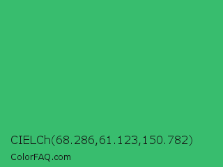 CIELCh 68.286,61.123,150.782 Color is a normal green color and the nearest color is Medium Sea Green #3cb371. Hex code #38bd6e and RGB value is rgb(56,189,110). In RGB color space, this color is composed of 22% red, 74% green, 43% blue, In CMYK color space, this color is composed of 70% cyan, 0% magenta, 42% yellow , 26% black , In HSL color space, this color has a hue angle of 144° , 54% saturation and 48% lightness.