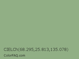CIELCh 68.295,25.813,135.078 Color is a normal green color and the nearest color is Envy #8ba690. Hex code #91af85 and RGB value is rgb(145,175,133). In RGB color space, this color is composed of 57% red, 69% green, 52% blue, In CMYK color space, this color is composed of 17% cyan, 0% magenta, 24% yellow , 31% black , In HSL color space, this color has a hue angle of 103° , 21% saturation and 60% lightness.