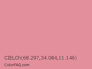 CIELCh 68.297,34.084,11.146 Color is a light red color and the nearest color is Ruddy Pink #e18e96. Hex code #e38f9c and RGB value is rgb(227,143,156). In RGB color space, this color is composed of 89% red, 56% green, 61% blue, In CMYK color space, this color is composed of 0% cyan, 37% magenta, 31% yellow , 11% black , In HSL color space, this color has a hue angle of 351° , 60% saturation and 73% lightness.