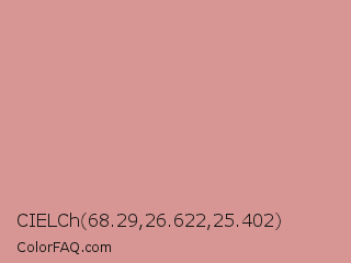 CIELCh 68.29,26.622,25.402 Color is a light red color and the nearest color is Petite Orchid #db9690. Hex code #d79693 and RGB value is rgb(215,150,147). In RGB color space, this color is composed of 84% red, 59% green, 58% blue, In CMYK color space, this color is composed of 0% cyan, 30% magenta, 32% yellow , 16% black , In HSL color space, this color has a hue angle of 3° , 46% saturation and 71% lightness.