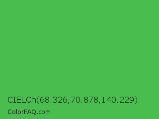 CIELCh 68.326,70.878,140.229 Color is a normal green color and the nearest color is Apple #4fa83d. Hex code #4abd4f and RGB value is rgb(74,189,79). In RGB color space, this color is composed of 29% red, 74% green, 31% blue, In CMYK color space, this color is composed of 61% cyan, 0% magenta, 58% yellow , 26% black , In HSL color space, this color has a hue angle of 123° , 47% saturation and 52% lightness.