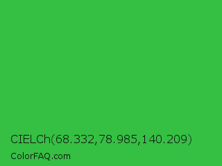 CIELCh 68.332,78.985,140.209 Color is a normal green color and the nearest color is Wageningen Green #34b233. Hex code #35bf43 and RGB value is rgb(53,191,67). In RGB color space, this color is composed of 21% red, 75% green, 26% blue, In CMYK color space, this color is composed of 72% cyan, 0% magenta, 65% yellow , 25% black , In HSL color space, this color has a hue angle of 126° , 57% saturation and 48% lightness.