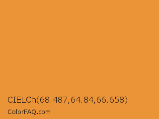 CIELCh 68.487,64.84,66.658 Color is a normal orange color and the nearest color is Tigers Eye #e08d3c. Hex code #ea9337 and RGB value is rgb(234,147,55). In RGB color space, this color is composed of 92% red, 58% green, 22% blue, In CMYK color space, this color is composed of 0% cyan, 37% magenta, 76% yellow , 8% black , In HSL color space, this color has a hue angle of 31° , 81% saturation and 57% lightness.