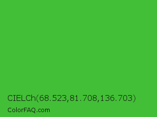 CIELCh 68.523,81.708,136.703 Color is a normal green color and the nearest color is Wageningen Green #34b233. Hex code #42bf36 and RGB value is rgb(66,191,54). In RGB color space, this color is composed of 26% red, 75% green, 21% blue, In CMYK color space, this color is composed of 65% cyan, 0% magenta, 72% yellow , 25% black , In HSL color space, this color has a hue angle of 115° , 56% saturation and 48% lightness.