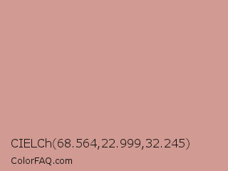 CIELCh 68.564,22.999,32.245 Color is a light red color and the nearest color is Petite Orchid #db9690. Hex code #d19a92 and RGB value is rgb(209,154,146). In RGB color space, this color is composed of 82% red, 60% green, 57% blue, In CMYK color space, this color is composed of 0% cyan, 26% magenta, 30% yellow , 18% black , In HSL color space, this color has a hue angle of 8° , 41% saturation and 70% lightness.