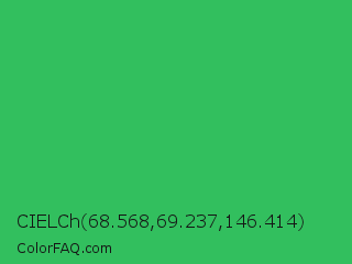 CIELCh 68.568,69.237,146.414 Color is a normal green color and the nearest color is Medium Sea Green #3cb371. Hex code #32bf5e and RGB value is rgb(50,191,94). In RGB color space, this color is composed of 20% red, 75% green, 37% blue, In CMYK color space, this color is composed of 74% cyan, 0% magenta, 51% yellow , 25% black , In HSL color space, this color has a hue angle of 139° , 59% saturation and 47% lightness.