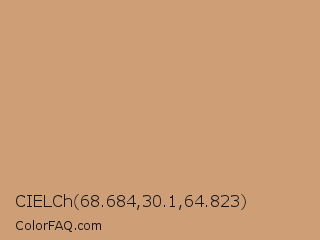 CIELCh 68.684,30.1,64.823 Color is a light orange color and the nearest color is Antique Brass #cd9575. Hex code #ce9e77 and RGB value is rgb(206,158,119). In RGB color space, this color is composed of 81% red, 62% green, 47% blue, In CMYK color space, this color is composed of 0% cyan, 23% magenta, 42% yellow , 19% black , In HSL color space, this color has a hue angle of 27° , 47% saturation and 64% lightness.