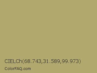 CIELCh 68.743,31.589,99.973 Color is a normal yellow color and the nearest color is Gimblet #b8b56a. Hex code #b2a96f and RGB value is rgb(178,169,111). In RGB color space, this color is composed of 70% red, 66% green, 44% blue, In CMYK color space, this color is composed of 0% cyan, 5% magenta, 38% yellow , 30% black , In HSL color space, this color has a hue angle of 52° , 30% saturation and 57% lightness.