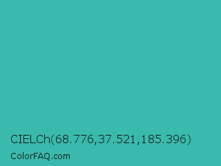 CIELCh 68.776,37.521,185.396 Color is a normal cyan color and the nearest color is Puerto Rico #3fc1aa. Hex code #3abaad and RGB value is rgb(58,186,173). In RGB color space, this color is composed of 23% red, 73% green, 68% blue, In CMYK color space, this color is composed of 69% cyan, 0% magenta, 7% yellow , 27% black , In HSL color space, this color has a hue angle of 174° , 52% saturation and 48% lightness.