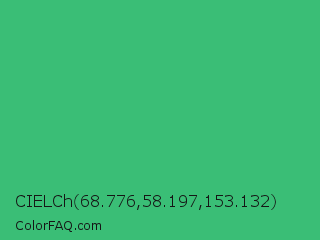 CIELCh 68.776,58.197,153.132 Color is a normal green color and the nearest color is Medium Sea Green #3cb371. Hex code #3abe76 and RGB value is rgb(58,190,118). In RGB color space, this color is composed of 23% red, 75% green, 46% blue, In CMYK color space, this color is composed of 69% cyan, 0% magenta, 38% yellow , 25% black , In HSL color space, this color has a hue angle of 147° , 53% saturation and 49% lightness.