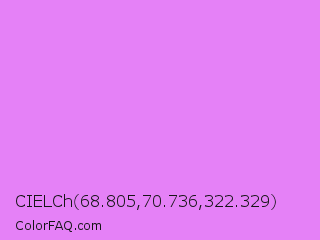 CIELCh 68.805,70.736,322.329 Color is a light purple color and the nearest color is Lavender Magenta #ee82ee. Hex code #e581f7 and RGB value is rgb(229,129,247). In RGB color space, this color is composed of 90% red, 51% green, 97% blue, In CMYK color space, this color is composed of 7% cyan, 48% magenta, 0% yellow , 3% black , In HSL color space, this color has a hue angle of 291° , 88% saturation and 74% lightness.