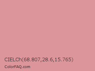 CIELCh 68.807,28.6,15.765 Color is a light red color and the nearest color is Parrot Pink #d998a0. Hex code #dc959b and RGB value is rgb(220,149,155). In RGB color space, this color is composed of 86% red, 58% green, 61% blue, In CMYK color space, this color is composed of 0% cyan, 32% magenta, 30% yellow , 14% black , In HSL color space, this color has a hue angle of 355° , 50% saturation and 72% lightness.