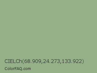CIELCh 68.909,24.273,133.922 Color is a light green color and the nearest color is Sage #9ea587. Hex code #95b088 and RGB value is rgb(149,176,136). In RGB color space, this color is composed of 58% red, 69% green, 53% blue, In CMYK color space, this color is composed of 15% cyan, 0% magenta, 23% yellow , 31% black , In HSL color space, this color has a hue angle of 101° , 20% saturation and 61% lightness.