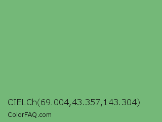 CIELCh 69.004,43.357,143.304 Color is a normal green color and the nearest color is Iguana Green #71bc78. Hex code #74b878 and RGB value is rgb(116,184,120). In RGB color space, this color is composed of 45% red, 72% green, 47% blue, In CMYK color space, this color is composed of 37% cyan, 0% magenta, 35% yellow , 28% black , In HSL color space, this color has a hue angle of 124° , 32% saturation and 59% lightness.