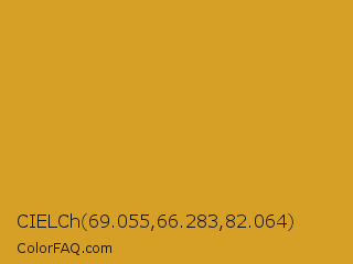 CIELCh 69.055,66.283,82.064 Color is a normal orange color and the nearest color is Golden Grass #daa520. Hex code #d5a025 and RGB value is rgb(213,160,37). In RGB color space, this color is composed of 84% red, 63% green, 15% blue, In CMYK color space, this color is composed of 0% cyan, 25% magenta, 83% yellow , 16% black , In HSL color space, this color has a hue angle of 42° , 70% saturation and 49% lightness.