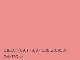 CIELCh 69.178,37.528,23.953 Color is a light red color and the nearest color is Ruddy Pink #e18e96. Hex code #eb908f and RGB value is rgb(235,144,143). In RGB color space, this color is composed of 92% red, 56% green, 56% blue, In CMYK color space, this color is composed of 0% cyan, 39% magenta, 39% yellow , 8% black , In HSL color space, this color has a hue angle of 1° , 70% saturation and 74% lightness.