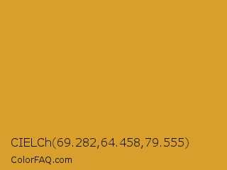 CIELCh 69.282,64.458,79.555 Color is a normal orange color and the nearest color is Golden Grass #daa520. Hex code #d99f2d and RGB value is rgb(217,159,45). In RGB color space, this color is composed of 85% red, 62% green, 18% blue, In CMYK color space, this color is composed of 0% cyan, 27% magenta, 79% yellow , 15% black , In HSL color space, this color has a hue angle of 40° , 69% saturation and 51% lightness.