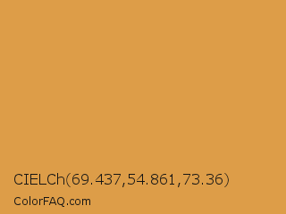 CIELCh 69.437,54.861,73.36 Color is a normal orange color and the nearest color is Indian Yellow #e3a857. Hex code #dd9d48 and RGB value is rgb(221,157,72). In RGB color space, this color is composed of 87% red, 62% green, 28% blue, In CMYK color space, this color is composed of 0% cyan, 29% magenta, 67% yellow , 13% black , In HSL color space, this color has a hue angle of 34° , 69% saturation and 57% lightness.