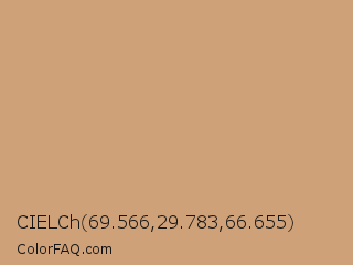 CIELCh 69.566,29.783,66.655 Color is a light orange color and the nearest color is Antique Brass #cd9575. Hex code #cfa179 and RGB value is rgb(207,161,121). In RGB color space, this color is composed of 81% red, 63% green, 47% blue, In CMYK color space, this color is composed of 0% cyan, 22% magenta, 42% yellow , 19% black , In HSL color space, this color has a hue angle of 28° , 47% saturation and 64% lightness.