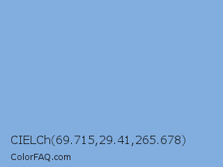 CIELCh 69.715,29.41,265.678 Color is a light blue color and the nearest color is Light Cobalt Blue #88ace0. Hex code #82aedf and RGB value is rgb(130,174,223). In RGB color space, this color is composed of 51% red, 68% green, 87% blue, In CMYK color space, this color is composed of 42% cyan, 22% magenta, 0% yellow , 13% black , In HSL color space, this color has a hue angle of 212° , 59% saturation and 69% lightness.