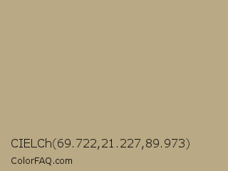 CIELCh 69.722,21.227,89.973 Color is a light orange color and the nearest color is Mongoose #b5a27f. Hex code #b9a984 and RGB value is rgb(185,169,132). In RGB color space, this color is composed of 73% red, 66% green, 52% blue, In CMYK color space, this color is composed of 0% cyan, 9% magenta, 29% yellow , 27% black , In HSL color space, this color has a hue angle of 42° , 27% saturation and 62% lightness.